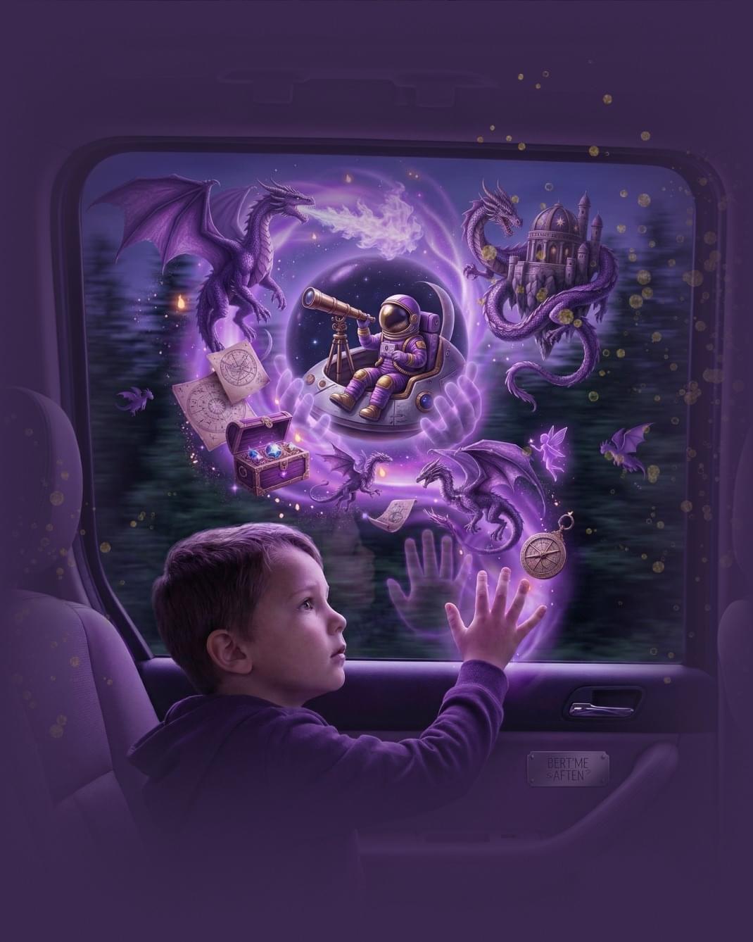 Im Auto auf dem Rücksitz schaust du aus dem Fenster – und während draußen nur Bäume vorbeiziehen, rettest du in deinem Kopf gerade die Welt.